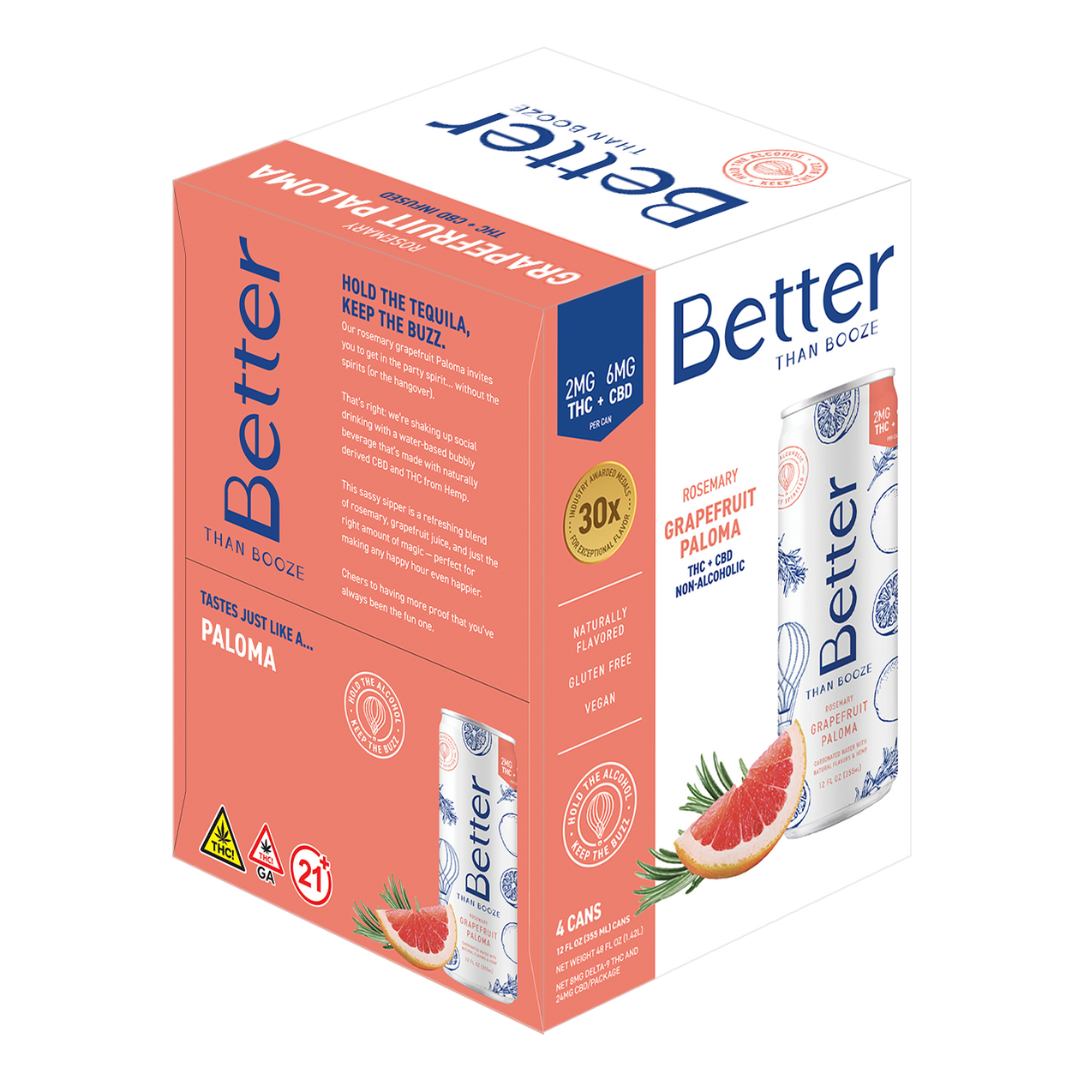 Our Rosemary Grapefruit Paloma invites you to get in the party spirit…without the spirits (or the hangover). That’s right: we’re shaking up social drinking with a water-based beverage made from hemp-derived CBD and THC. This bubbly sipper is a refreshing blend of rosemary, grapefruit juice, and just the right amount of Hemp magic—perfect for making any happy hour even happier. Cheers to having more proof that you’ve always been the fun one.
